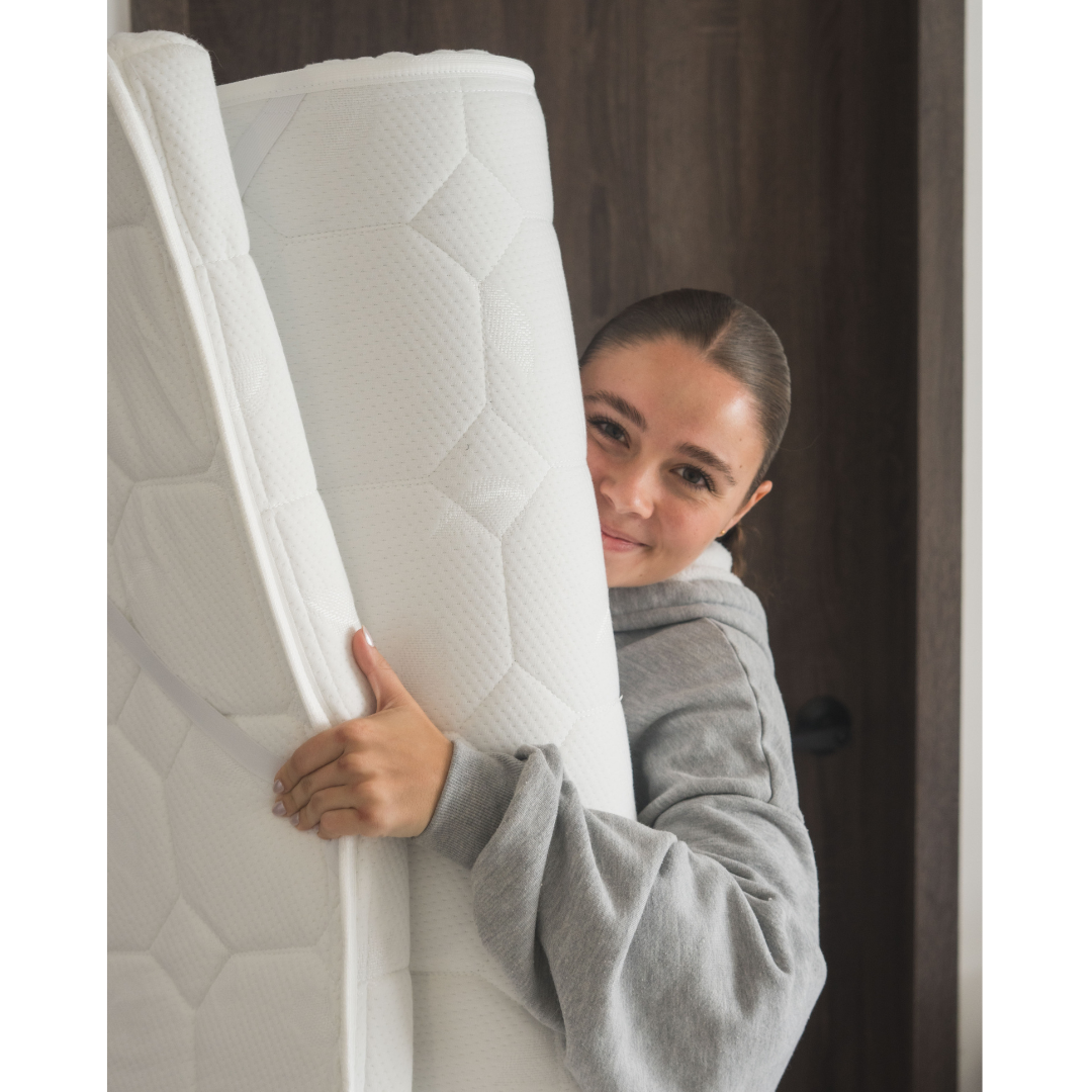 Solución ideal para quienes sufren con colchones duros, antiguos o poco confortables. Diseñado con espuma de alta densidad y una funda 100% algodón, mejora tu descanso sin hacer una gran inversión.